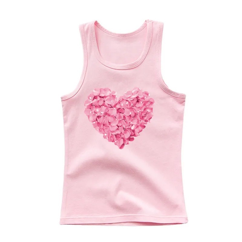 Strona główna Strona główna Odzież i akcesoria Ubranka dla dzieci Ubrania dla dziewczynek Podkoszulki dziewczęce Dziewczęce letnie top bez rękawów 100% bawełna Jednokolorowy księżniczkowy t-shirt z różowym serduszkiem Miękki wygodny top różne kolory