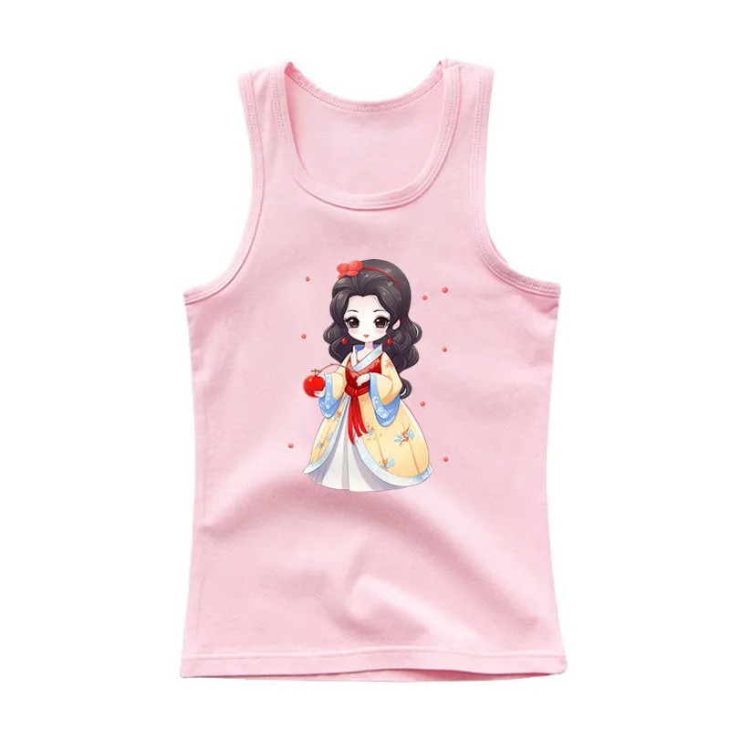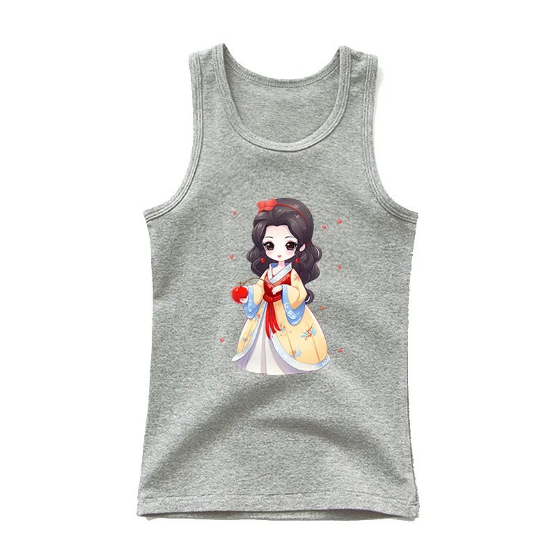 Dziewczęce letnie topy bez rękawów 100% bawełna Jednolite koszulki z rysunkową księżniczką Uroczy modny top dla dzieci Wygodne różne kolory