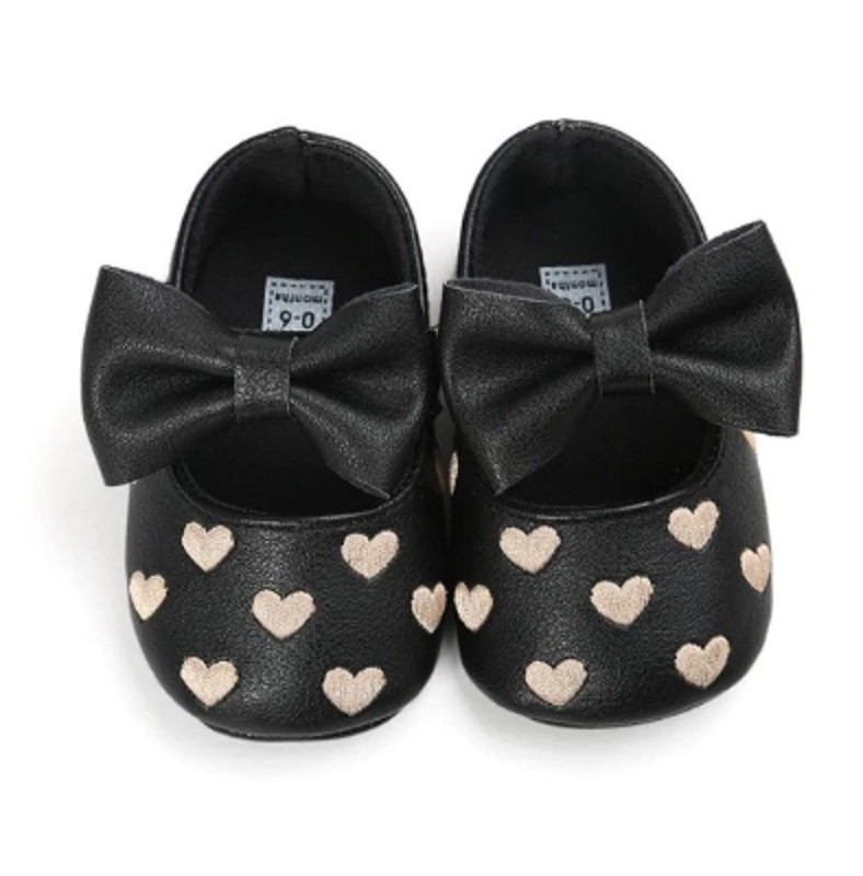 Dziewczęce skórzane kapcie ozdobione sercami zasługują na najmniejsze parádnice.