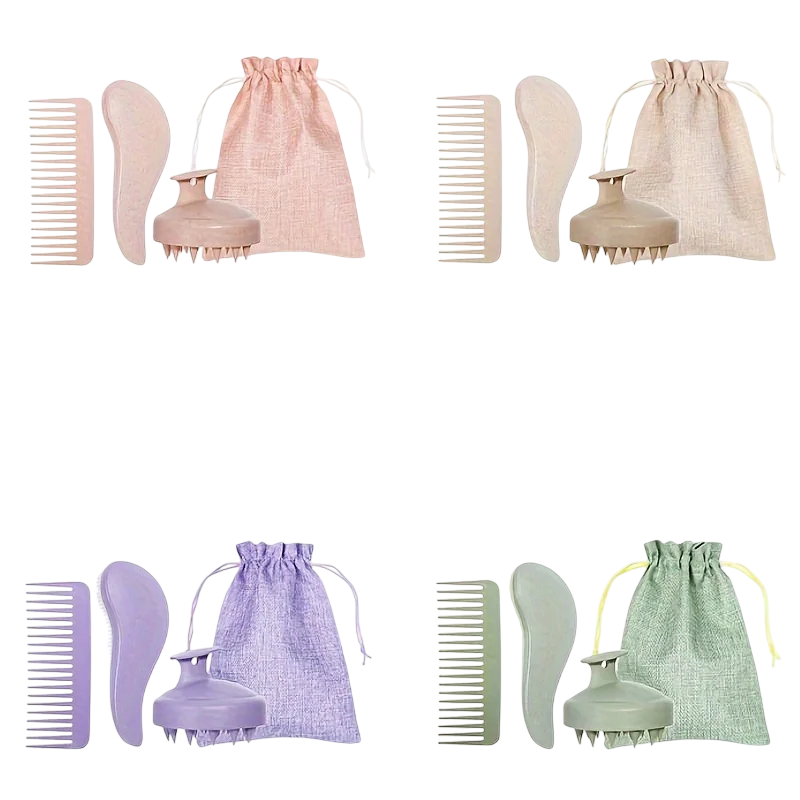 Praktyczny zestaw szczotek i grzebienia do delikatnego rozczesywania, masażu skóry głowy oraz pielęgnacji podczas mycia włosów. Idealny do codziennego użytku. Pełny opis