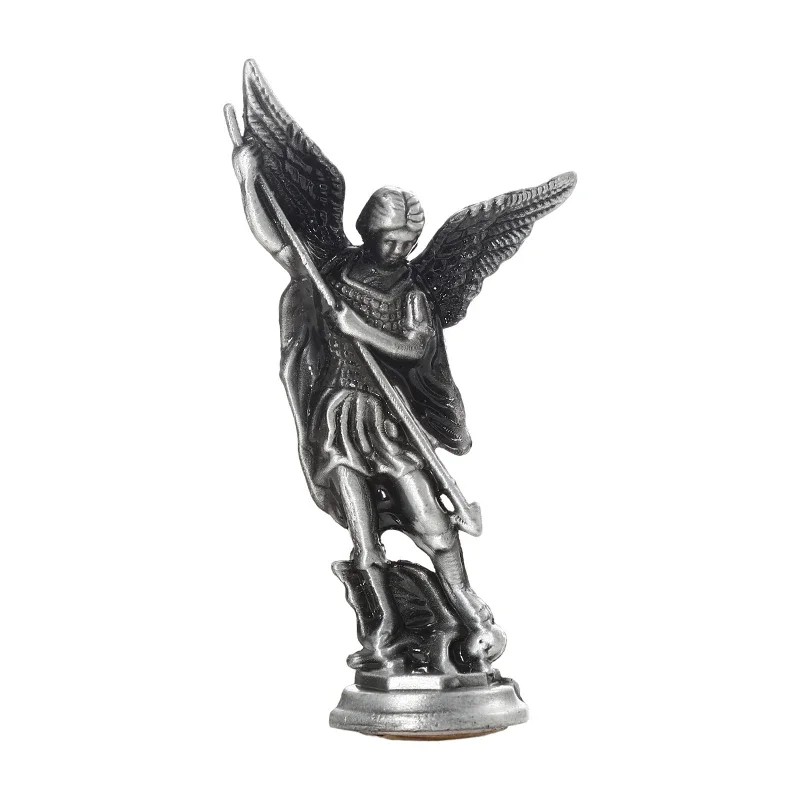 Figurka świętego Michała 8 x 4,2 cm Metalowa stopa Religijna figurka archanioła Dekoracja ołtarza symbol ochrony wiary