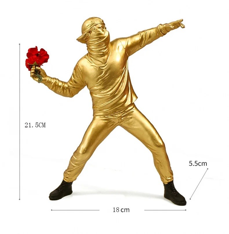 Figurka vrhača kwiatów 21,5 x 18 x 5,5 cm Figurka z żywicy z kwiatem Ta żywiczna figurka vrhača kwiatów przedstawia mężczyznę, który trzyma kwiat w ręce i jest w ruchu, jakby go rzucał. Figurka symbolizuje piękno, nadzieję i pozytywną energię. Z wymiarami 21,5 x 18 x 5,5 cm jest idealna do umieszczenia na stole, półce lub jako centralna dekoracja w salonie czy biurze. Wykonana z wysokiej jakości żywicy, ta figurka jest nie tylko eleganckim dodatkiem do wnętrza, ale także wyjątkowym dziełem sztuki, które przyciąga uwagę. Ta figurka jest doskonałym prezentem na różne okazje, takie jak urodziny, rocznice czy jako dekoracja na wesela i inne uroczyste momenty.