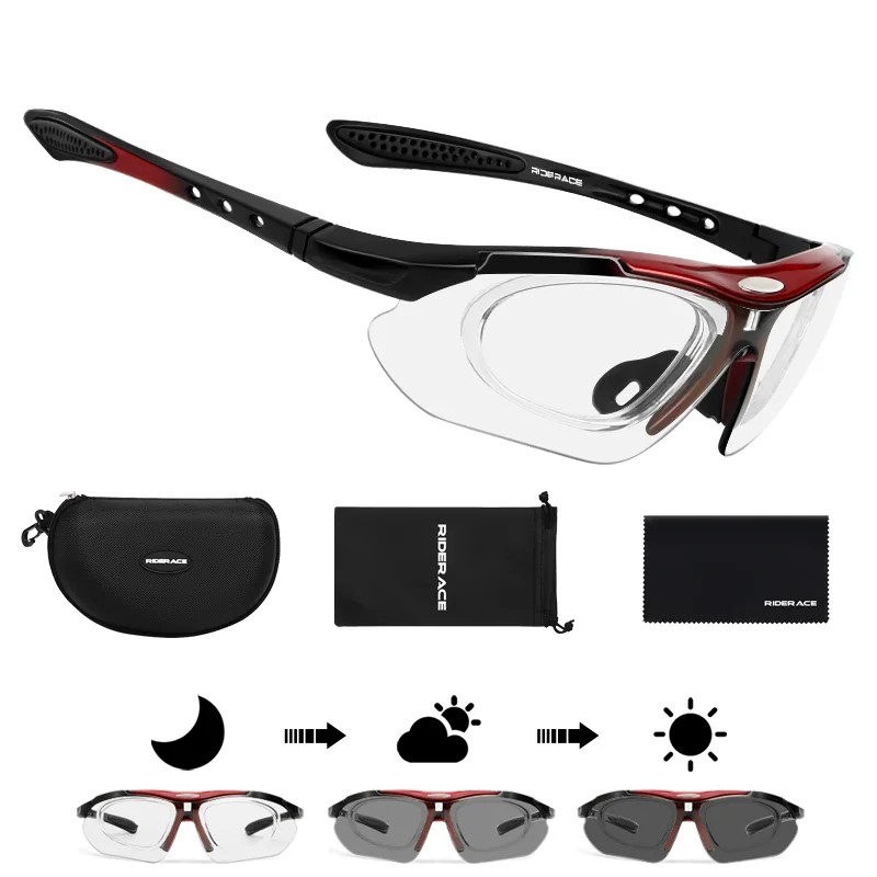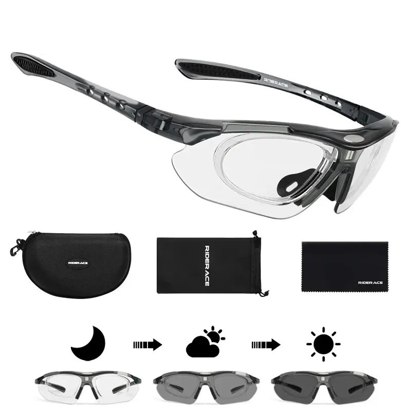 Strona główna Strona główna Sport i outdoor Akcesoria rowerowe Okulary rowerowe Fotochromatyczne okulary sportowe 140 mm 32 g soczewki PC Polaryzacyjne samoczerniejące Okulary rowerowe do jazdy na rowerze biegania prowadzenia