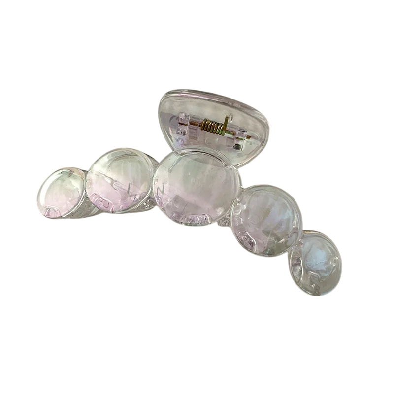 Przezroczysty holograficzny klips do włosów z delikatnym blaskiem mocno związuje włosy i nadaje fryzurze nowoczesny elegancki wygląd. Pełny opis