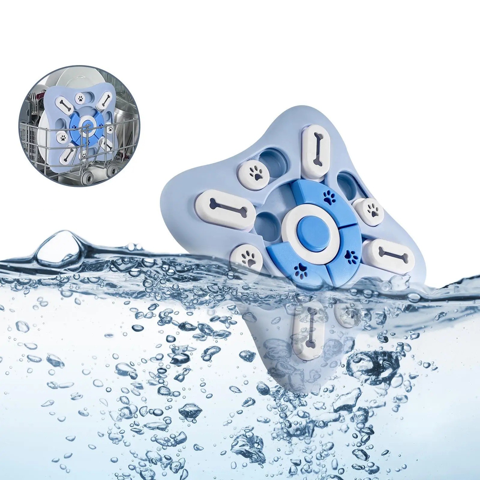 Użycie jest proste – włóż do ukryć małe suche smakołyki, ustaw trudność przesuwając lub obracając elementy i pozwól pupilowi je znaleźć. Obrotowe centrum można obracać o 360°, boczne przesuwane elementy odsłaniają kolejne ukrycia. Idealne dla psów i kotów wszystkich rozmiarów, pomaga zmniejszyć nudę, lęk i niepożądane zachowanie. Łatwe do czyszczenia wodą lub w zmywarce, więc jest gotowe do codziennego użycia.