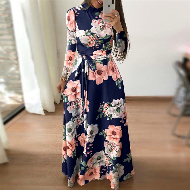 Jesienna sukienka maxi w kwiaty