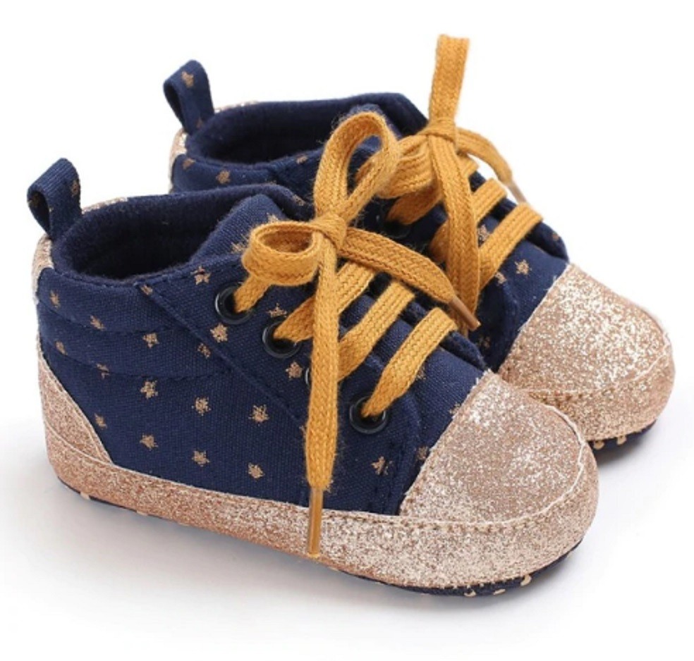 Ozdobione gwiazdkami botki będą świetnym dodatkiem do odzieży dziecięcej.