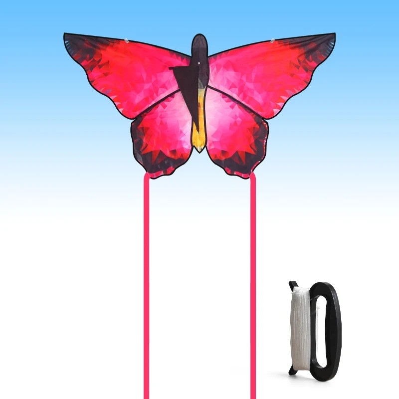 Lekki i stabilny latawiec z wytrzymałego poliestru z kolorowym motywem motyla i trzymetrowym ogonem przynosi radość z latania dzieciom i dorosłym. Pełny opis