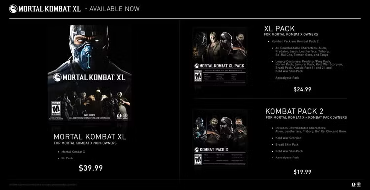 Kombat Pack 2 zapewnia dostęp do 4 nowych grywalnych postaci, a także wcześniej wydanego kontentu, w tym Goro, Kold War Skin Pack oraz 2 Klassic Fatality Pack. Nowe postacie to ikona horroru Leatherface i Xenomorph z Obcego. Bo' Rai Cho i Triborg the Cyber Ninja uzupełniają ofertę. Zawiera również pakiet Apocalypse Pack z trzema nowymi wyglądami postaci.