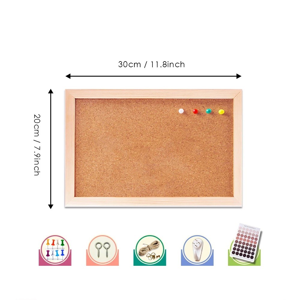 Korkowa tablica ogłoszeniowa z drewnianą ramą 20 × 30 × 1,5 cm Ramka sosnowa Naturalna korkowa tablica na notatki zdjęcia biuro dom