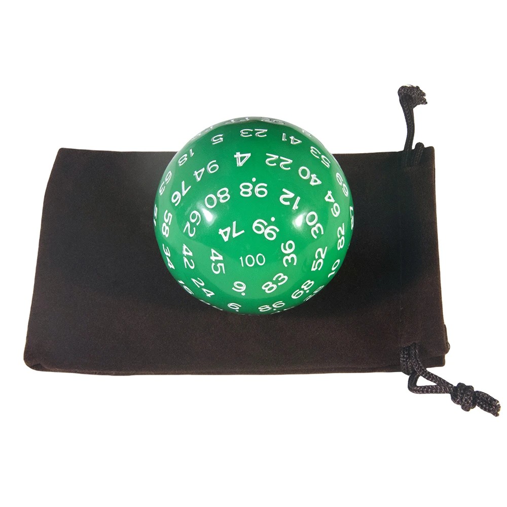 Akrylowa kostka stuścienna D100 z woreczkiem jest odpowiednia do gier RPG, gier fabularnych oraz rodzinnych gier planszowych, oferuje przejrzyste rzuty i wygodne użytkowanie. Pełny opis