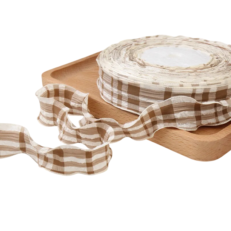 Kostkowana dekoracyjna wstążka 2,5 cm długość 91 cm Bawełniano-poliestrowa taśma materiałowa z falbanym brzegiem Ozdobny brzeg do szycia dekoracji