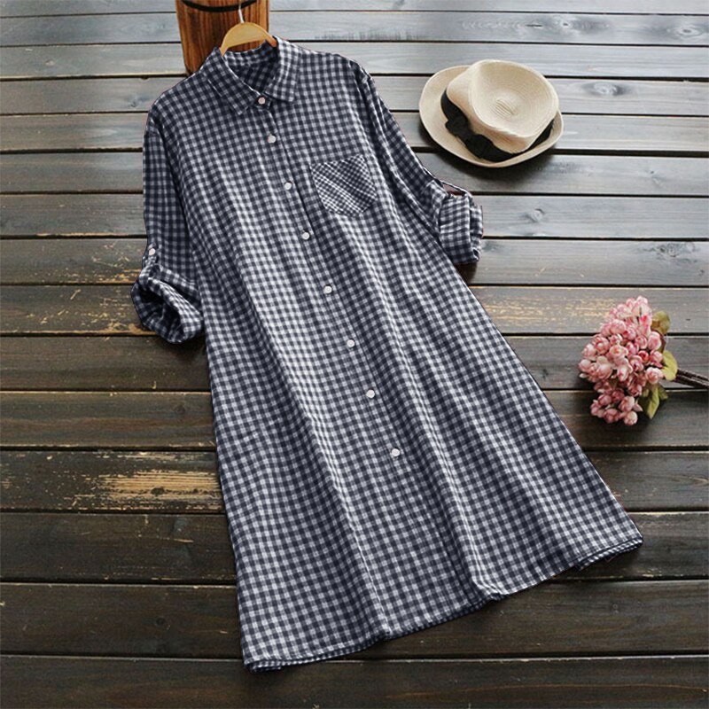 Pohodlne damskie koszulowe sukienki z nowoczesnym kostkowanym wzorem.