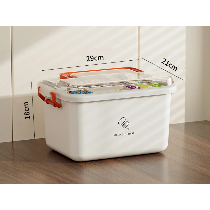 Krabica na leki 29 x 21 x 18 cm Plastikowa skrzynka na leki z dodatkową wewnętrzną warstwą i przezroczystą pokrywką dla przejrzystego uporządkowania