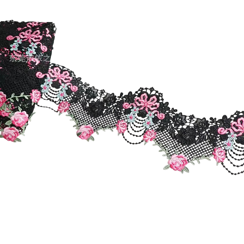 Elegancka wstążka koronkowa z kwiatowym motywem jest idealna do szycia, ozdabiania odzieży, dekoracji ślubnych oraz kreatywnych projektów DIY. Pełny opis