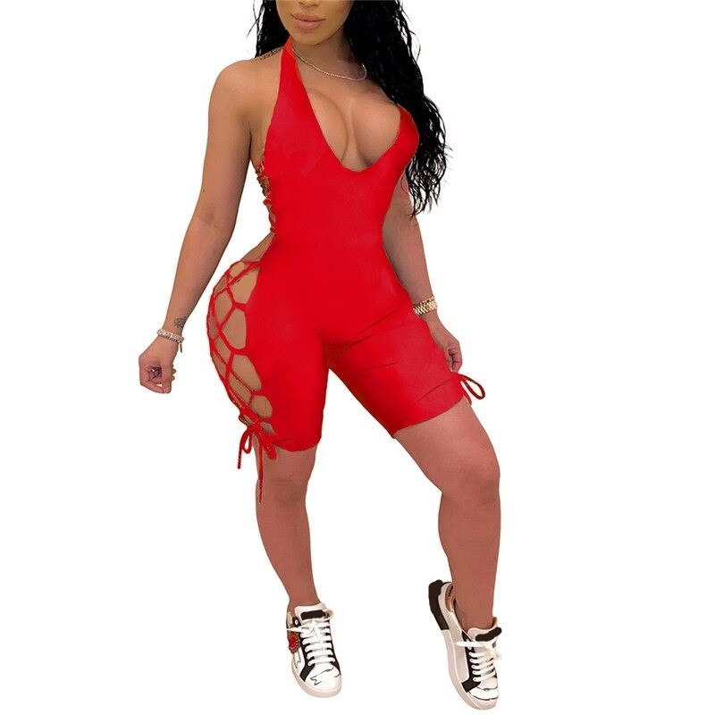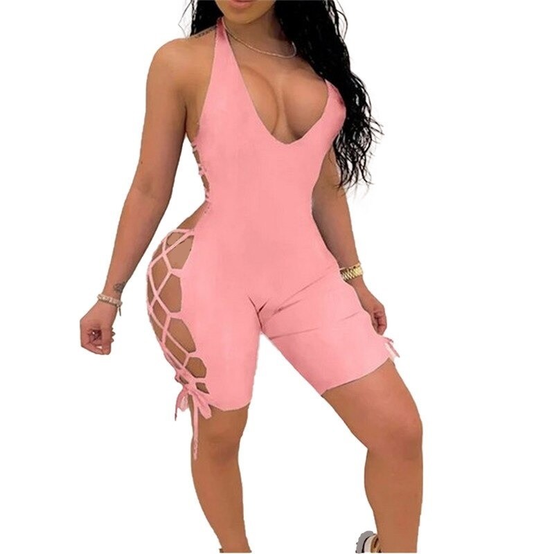 Krótki kombinezon damski z odkrytymi plecami