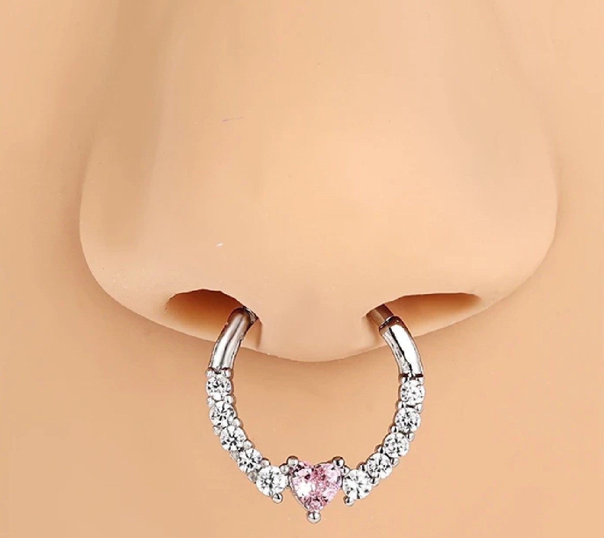 Kulatý piercing z różowym sercem i srebrnymi detalami wygląda delikatnie i elegancko, idealny jako stylowy dodatek do codziennego noszenia. Pełny opis