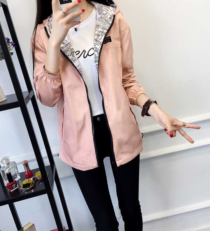 Kurtka jest z kapturem i zapinana na suwak, odpowiednia na wiosnę lub jesienią.