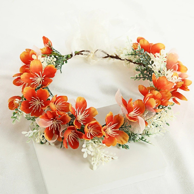 Strona główna Strona główna Odzież i akcesoria Odzież damska Akcesoria damskie Ozdoby do włosów Kwiatowa korona do włosów Pomarańczowe rozkwitłe łąkowe kwiaty Naturalna ozdoba do włosów z wstążką Romantyczna letnia dekoracja kwiatowa