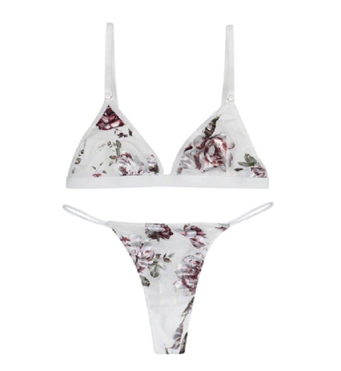 Ten piękny kwiatowy zestaw zawiera majtki i biustonosz!