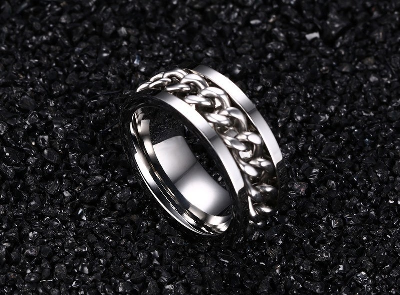 Męski pierścionek z łańcuszkiem to bardzo modny punkowy dodatek.
