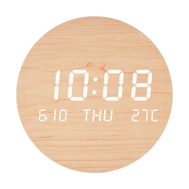 LED cyfrowe zegary ścienne z funkcją wyświetlania temperatury, daty i czasu o wymiarach 22 x 20,5 x 3,5 cm. Idealne do nowoczesnych domów i biur. Pełny opis