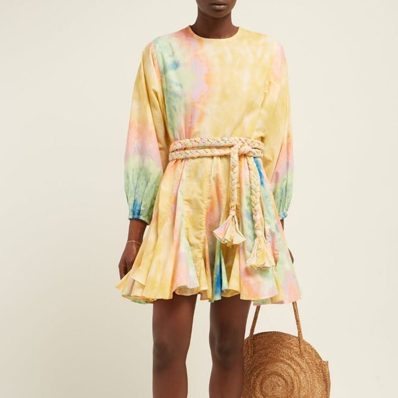 Letnia krótka sukienka w jaskrawym kolorze w stylu Boho.