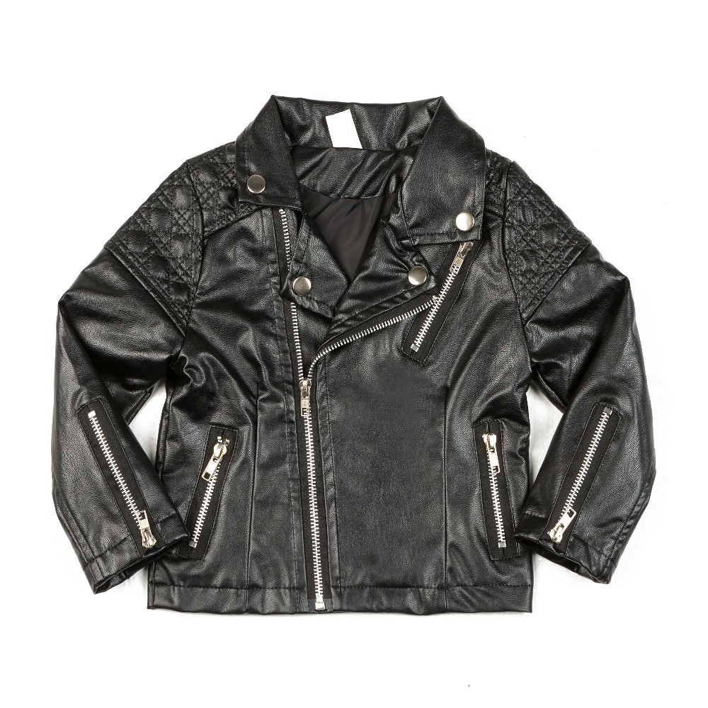 Luksusowa kurtka dziewczęca ze sztucznej skóry - czarna