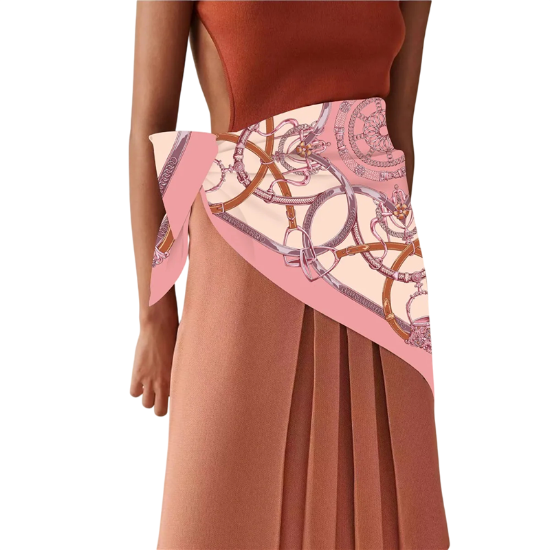 Elegancki kwadratowy szalik to ponadczasowy modny dodatek inspirowany klasycznym jeździeckim stylem Equestrian. Ten design jest symbolem sofistykacji, elegancji i tradycyjnego luksusu, który regularnie powraca w aktualnych trendach mody. Szalik łatwo uzupełni miejski outfit, styl biznesowy oraz casualowy look. Delikatny materiał jest przyjemny w dotyku i wygodny podczas całodziennych noszenia.