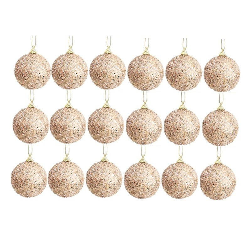 Luksusowy zestaw 18 sztuk błyszczących bombek świątecznych 6 cm w kolorze szampańsko-złotym do zawieszenia na choince i na przyjęcia