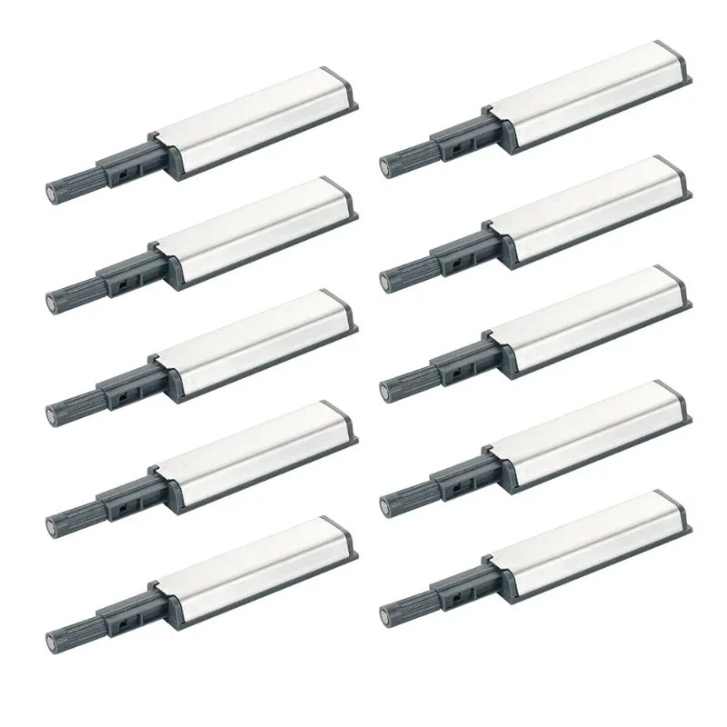 Taki zestaw zawiera 10 magnetycznych zamków push, idealnych do szafek kuchennych, komód, szaf wbudowanych i innego mebla. Zamki działają na zasadzie magnetycznego przycisku, który umożliwia łatwe otwieranie drzwi poprzez naciśnięcie. Dzięki nim możliwe jest bezpieczne i ciche zamykanie drzwi, co chroni zawartość szafek i minimalizuje hałas.
