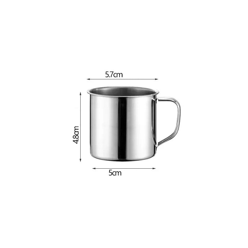 Mały stalowy kubek z uchwytem 100 ml 5.7 × 5 × 4.8 cm ze stali nierdzewnej srebrny do kawy espresso degustacji gospodarstwa domowego biura