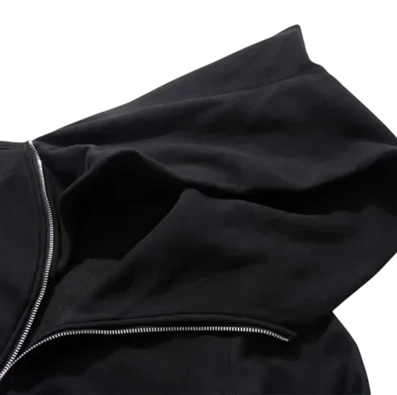 Strona główna Strona główna Odzież i akcesoria Odzież męska Bluzy męskie Męska czarna bluza z kapturem na zamek Stylowa asymetryczna bluza z ukośnym zamkiem z poliestru, bawełny, wiskozy i spandexu Nowoczesny streetwear