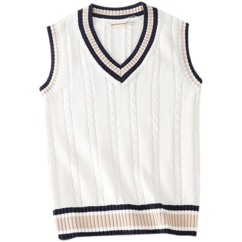 Męska kamizelka swetrowa bez rękawów z dekoltem w kształcie V Kolorowe wykończenie w paski Elegancka pleciona kamizelka Poliester i Bawełna Różne kolory