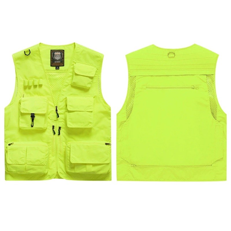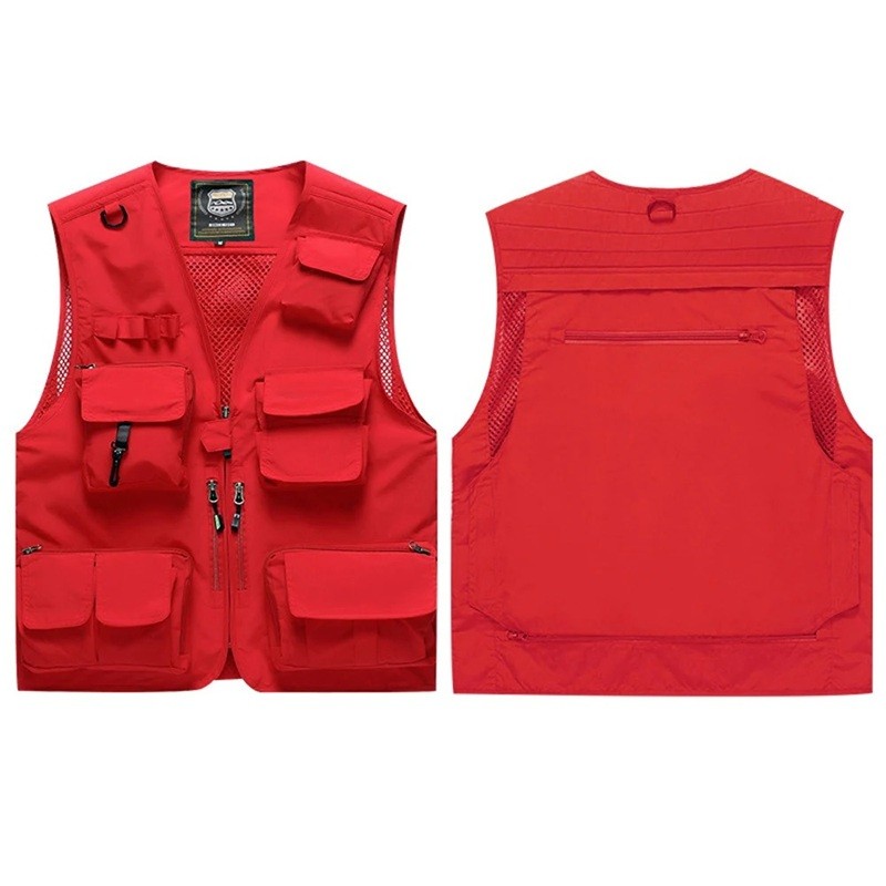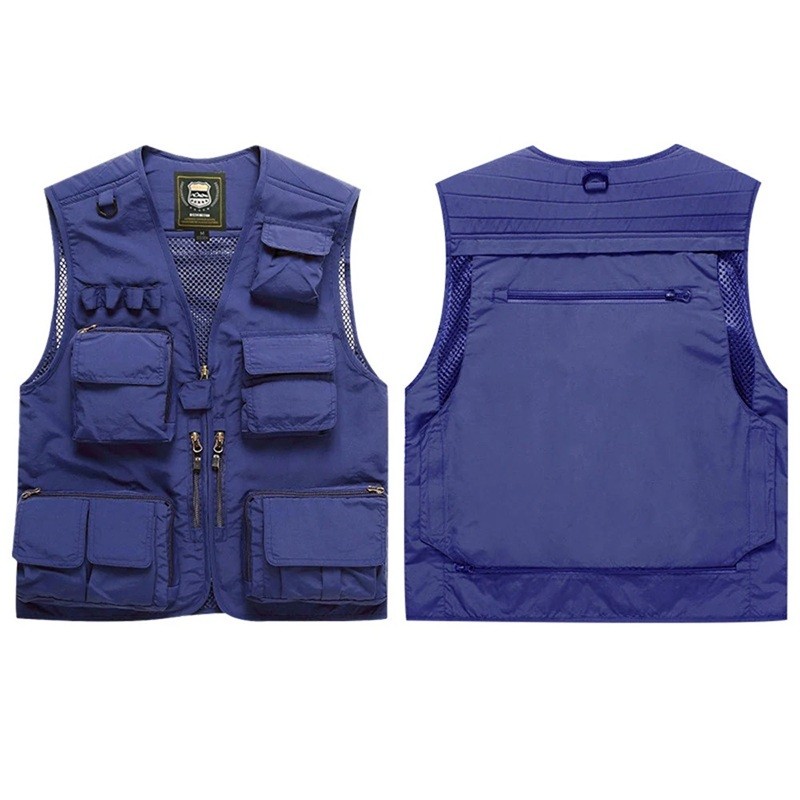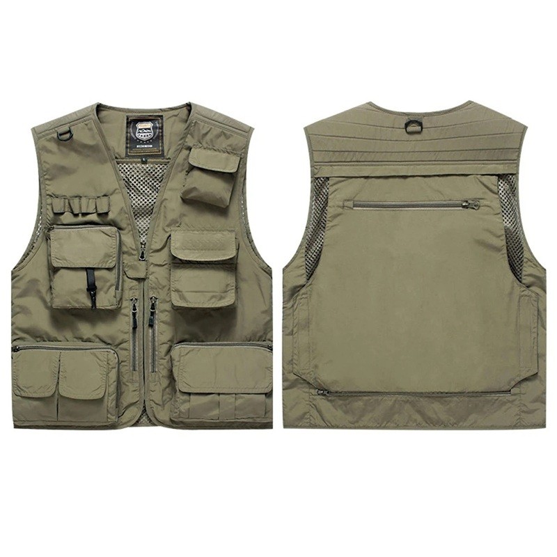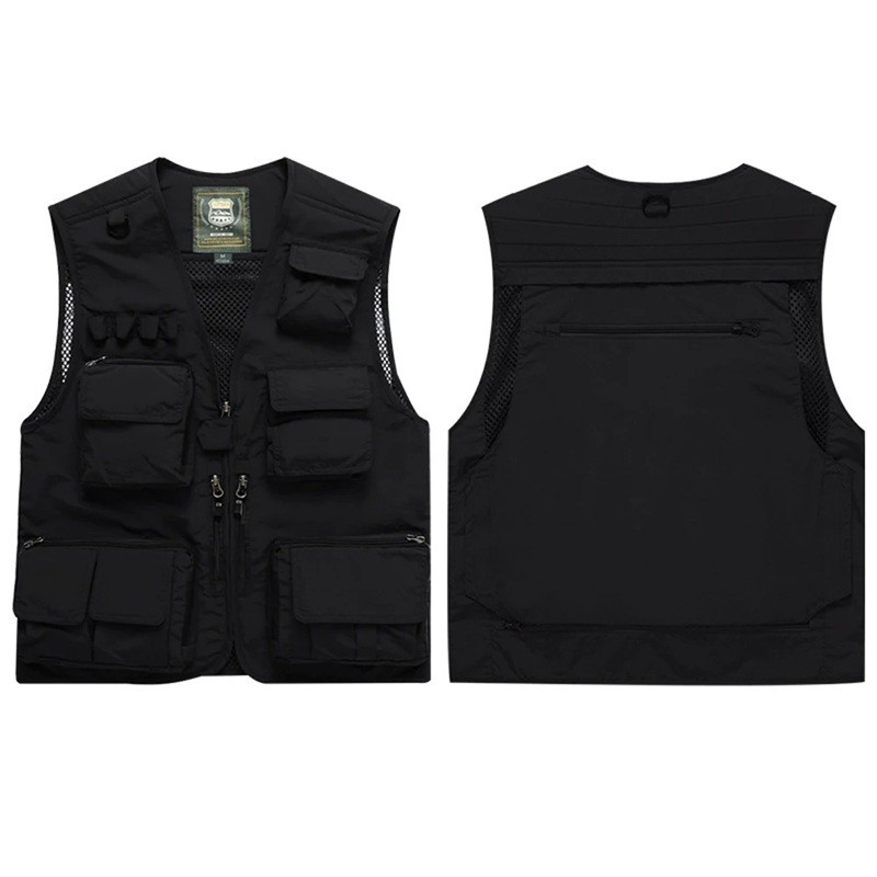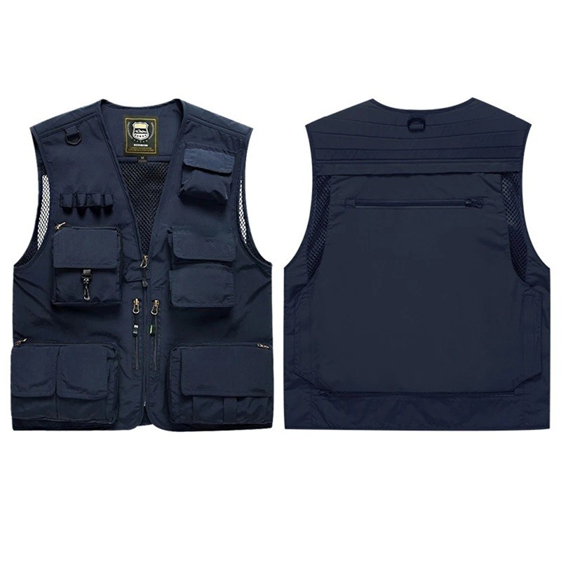 Męska kamizelka z wieloma kieszeniami na zamek i zapinaniem na zamek z poliestru do wędkowania, turystyki, fotografowania i aktywności na świeżym powietrzu