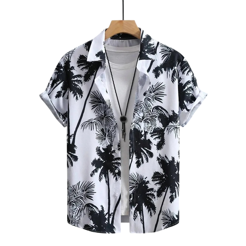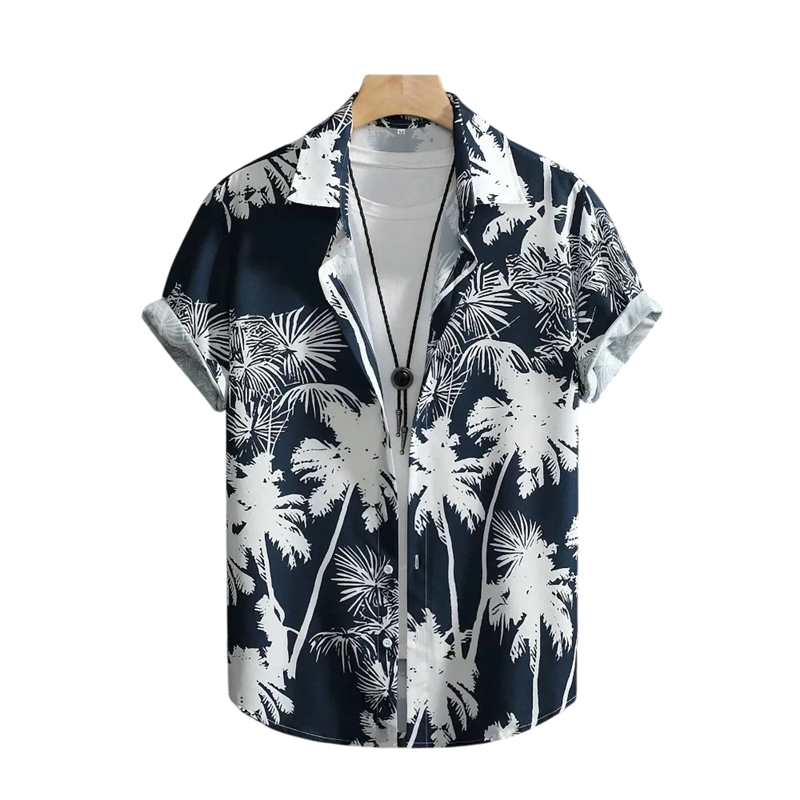 Lekka letnia koszula z palmowym motywem, krótkim rękawem i elastycznym materiałem oferuje komfort, swobodę ruchów i luźny styl. Pełny opis