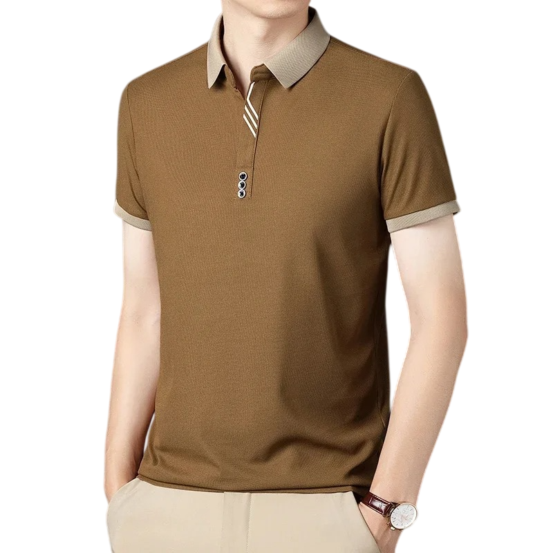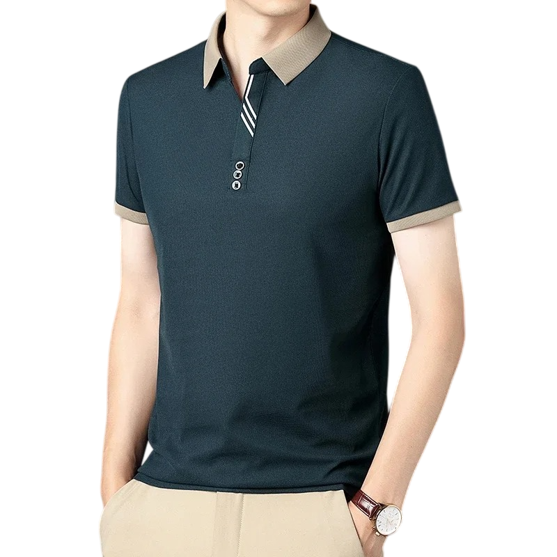 Elegancka męska polokošile z krótkim rękawem odpowiednia do pracy i na czas wolny, klasyczny wygląd bez nadruku i wygodny materiał. Pełny opis