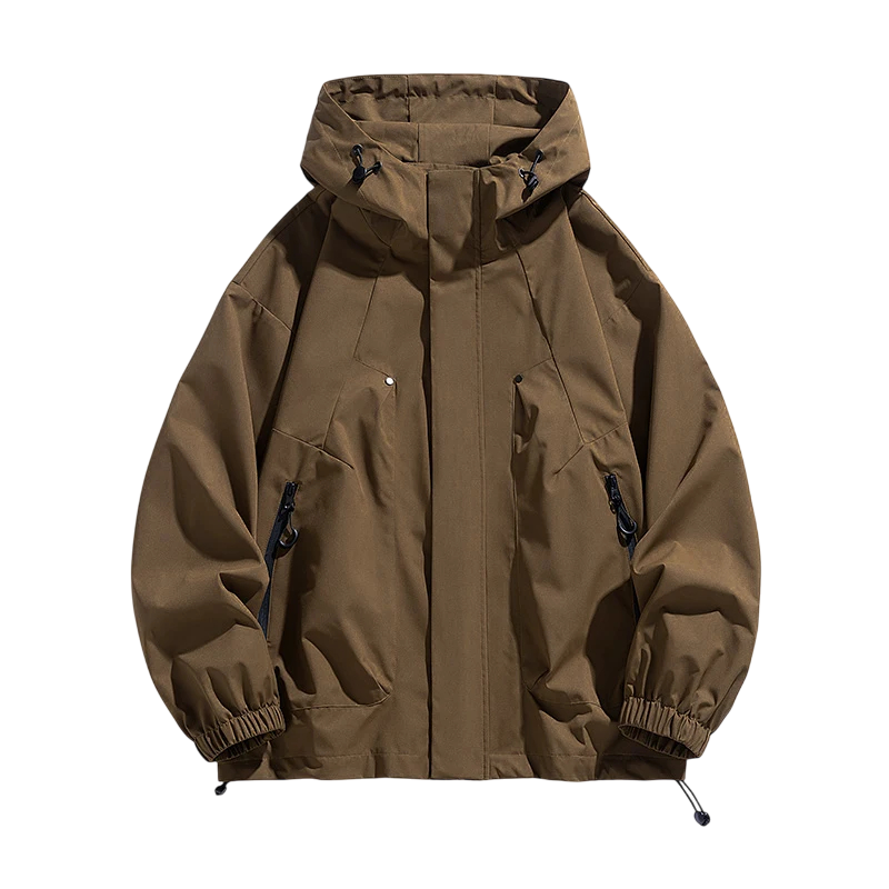 Męska kurtka na wiosnę i jesień Wiatrówka z kapturem Zapinana na zamek błyskawiczny Praktyczne kieszenie Wytrzymała poliesterowa konstrukcja