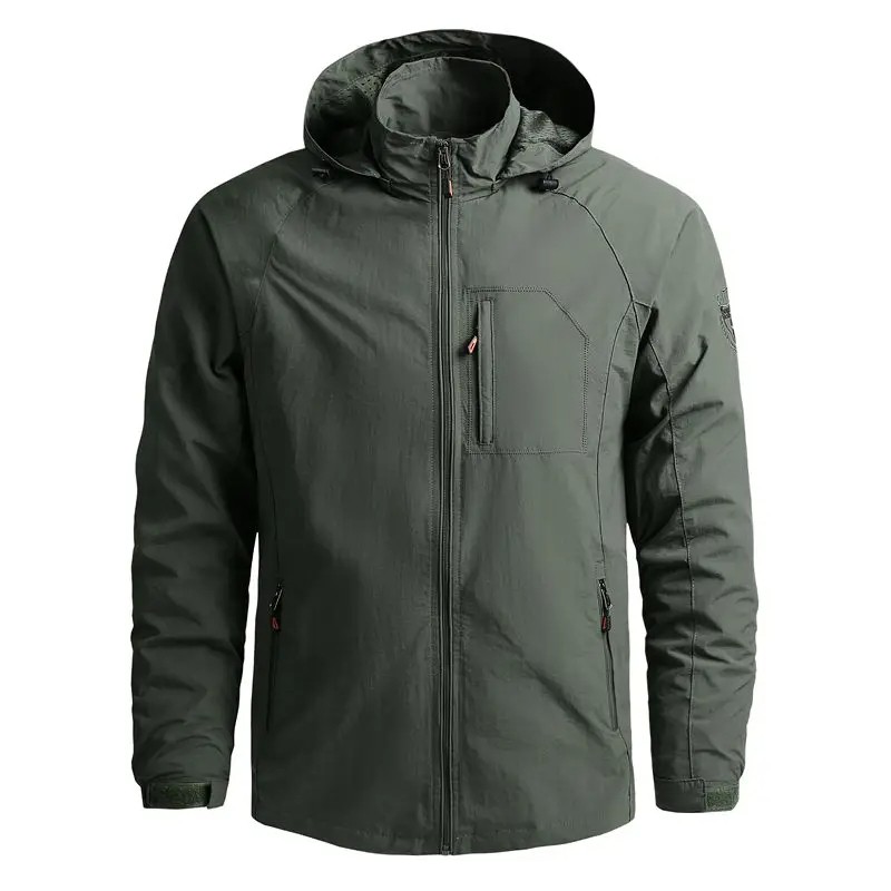 Męska kurtka outdoorowa z kapturem Wodoodporna kurtka wiatrówka z zamkiem błyskawicznym i kieszeniami Lekka kurtka turystyczna do wypoczynku Kurtka sportowa do chodzenia po lesie