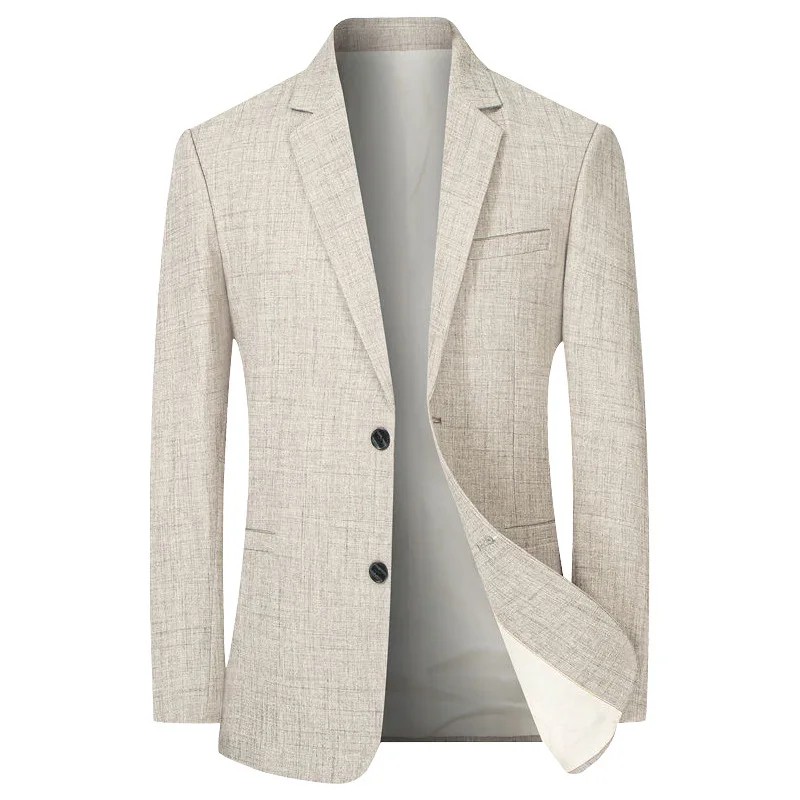 Strona główna Strona główna Odzież i akcesoria Odzież męska Garnitury i marynarki męskie Marynarki męskie Męska marynarka z poliestru i bawełny Elegancka przewiewna marynarka dla mężczyzn z kieszeniami i kieszonką na piersi Jednokolorowa stylowa marynarka z guzikiem