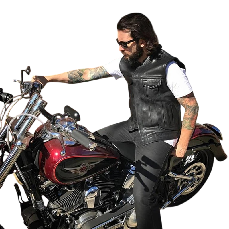 Męska motocyklowa kamizelka z PU skóry jednokolorowa czarna do jazdy na motocyklu, styl biker i codzienne noszenie