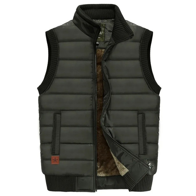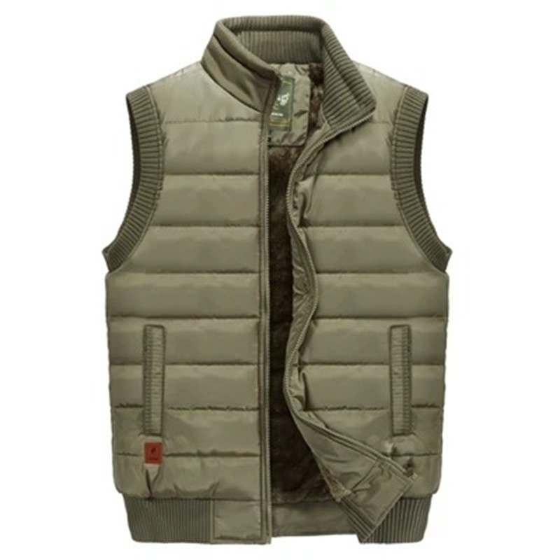 Męska ocieplana kamizelka z futerkiem wewnątrz i kieszeniami z kołnierzykiem na zamek poliester bawełna do turystyki, pracy na zewnątrz i codziennego noszenia
