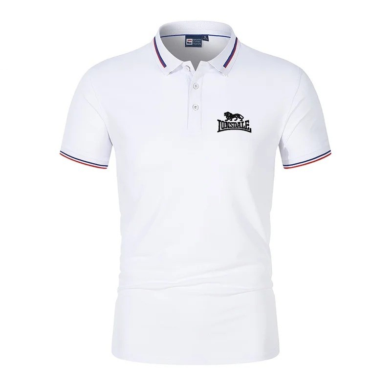 Strona główna Strona główna Odzież i akcesoria Odzież męska Koszulki męskie Koszulki męskie z krótkim rękawem Męska polokošile krótki rękaw z kołnierzykiem i guzikami Jednobarwna koszulka z nadrukiem lwa na piersi z poliestru