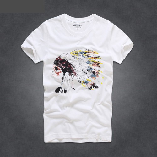 Męska stylowa koszulka z nadrukiem Indianina przeznaczona dla wszystkich miłośników tych rdzennych mieszkańców kontynentu amerykańskiego.