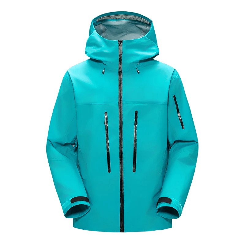 Męska wodoodporna kurtka outdoorowa z kapturem Kieszenie zapinane na zamek Regulowane mankiety Materiał oddychający Kurtka wiatroszczelna do uprawiania sportu i wędrówek