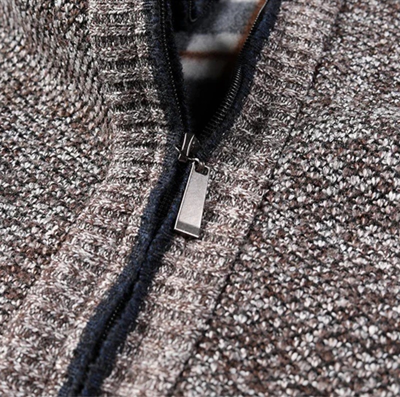 Ten męski kardigan łączy elegancję, komfort i praktyczność w jednym elemencie, który musi znaleźć się w nowoczesnej garderobie. Dzięki praktycznemu zapięciu na zamek jest bardzo łatwy do zakładania i zdejmowania, co docenisz podczas codziennego użytkowania. Golfowy kołnierz zapewnia ochronę szyi przed zimnem i nadaje całemu strojowi stylowy wygląd. Sweter jest wykonany z wytrzymałego materiału poliestrowego, który jest łatwy w pielęgnacji, szybko schnie i jednocześnie zapewnia długą żywotność.