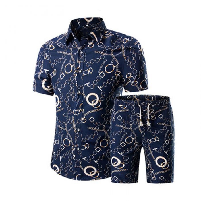 Oblecz się stylowo dzięki temu wzorzystemu zestawowi, który zawiera koszulę i szorty.