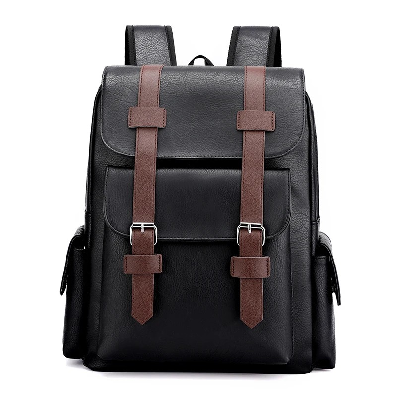 Męski prostokątny plecak 34 × 38 × 12 cm 20–35 l Elegancki miejski plecak z sztucznej skóry z zamkiem, klapą i klamrami