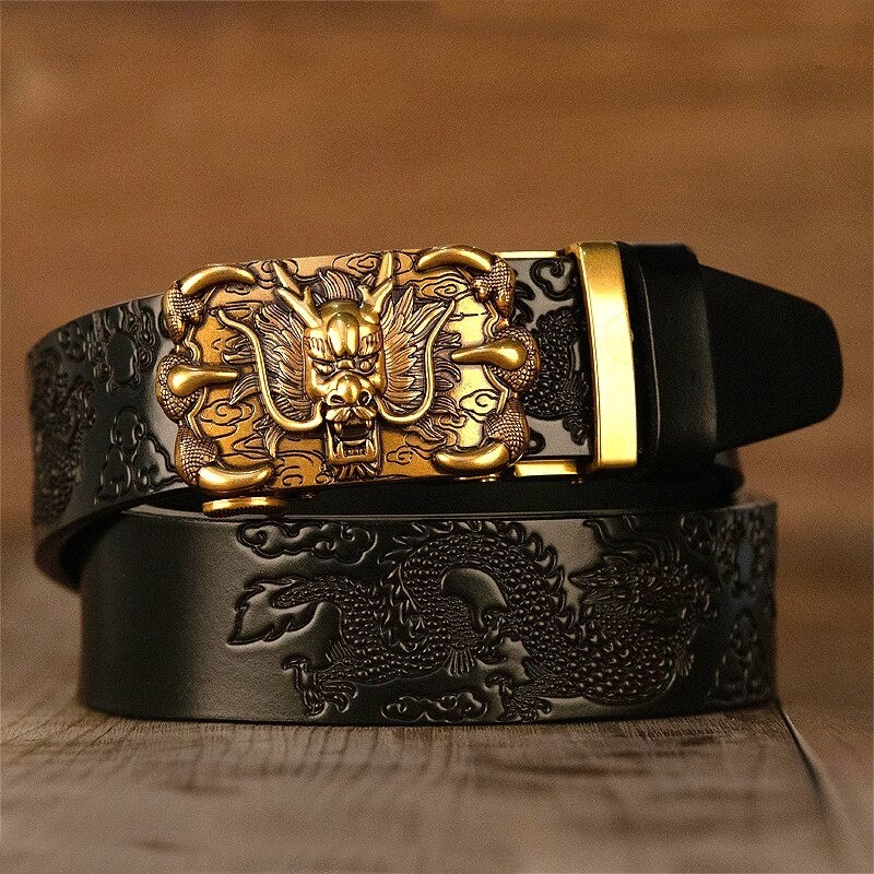 Męski skórzany pasek z chińskim smokiem