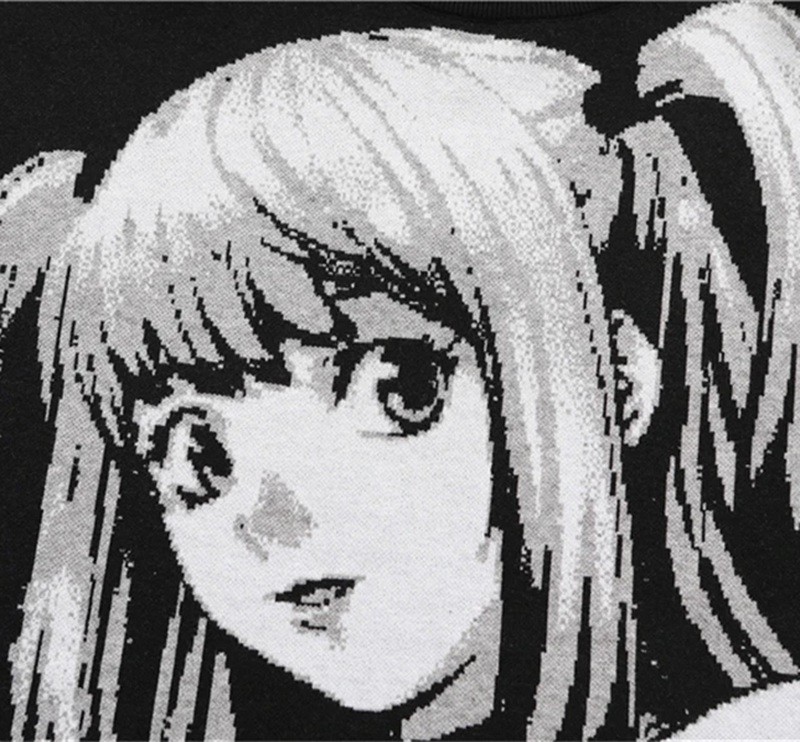 Męski sweter czarny w japońskim stylu Anime Girl Pleciony sweter z nadrukiem anime dziewczyny Stylowy streetwear sweter Poliester